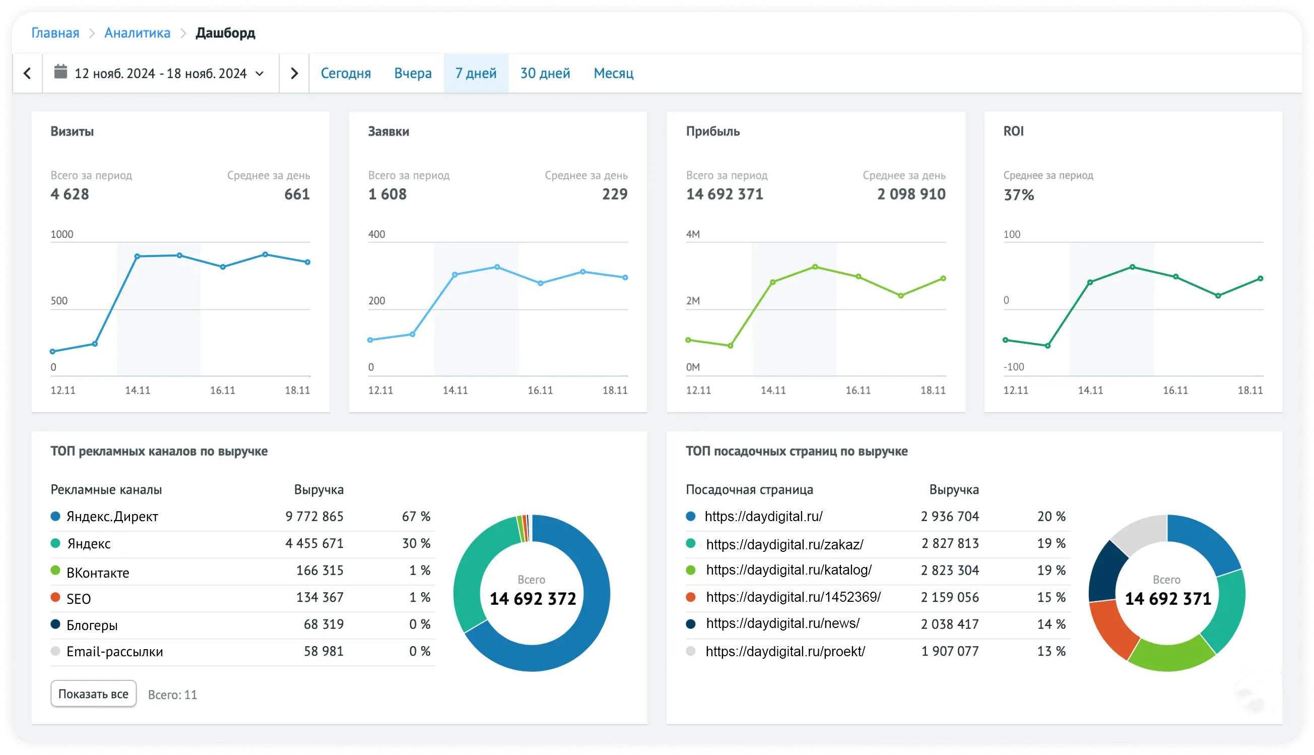 - Анализ пути клиента: Инструмент отслеживает каждый шаг клиента, начиная с первого контакта с рекламой и заканчивая покупкой.